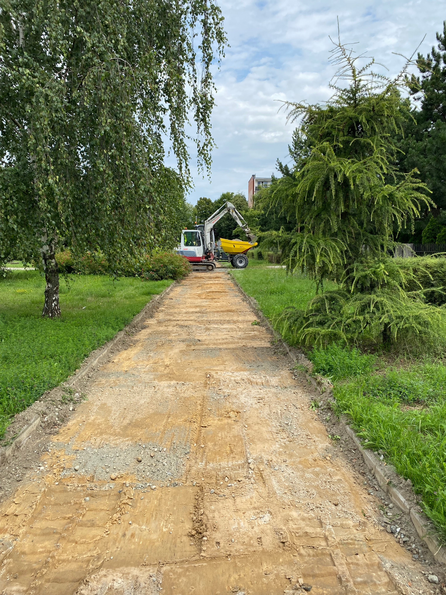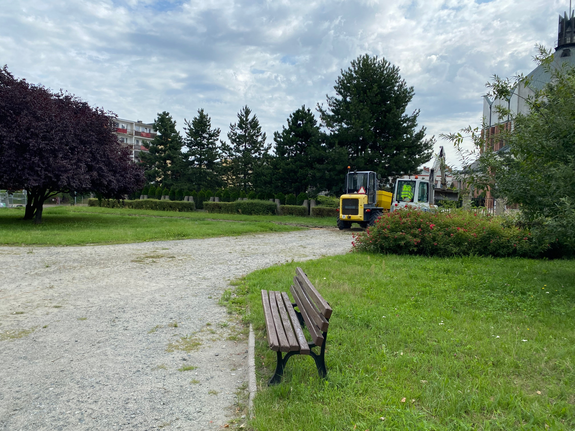 W ramach pierwszego etapu prac rozpoczęto rozbiórkę istniejącej nawierzchni, demontaż elementów małej architektury oraz urządzeń siłowni plenerowej, a także oczyszczanie terenu z zanieczyszczeń.